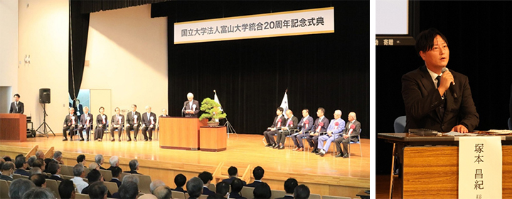 2025年10月1日(土)13時から、国立大学法人富山大学統合20周年記念式典・記念シンポジウム・懇親会(富山大学主催、富山大学同窓会連合会共催)が開催されました。