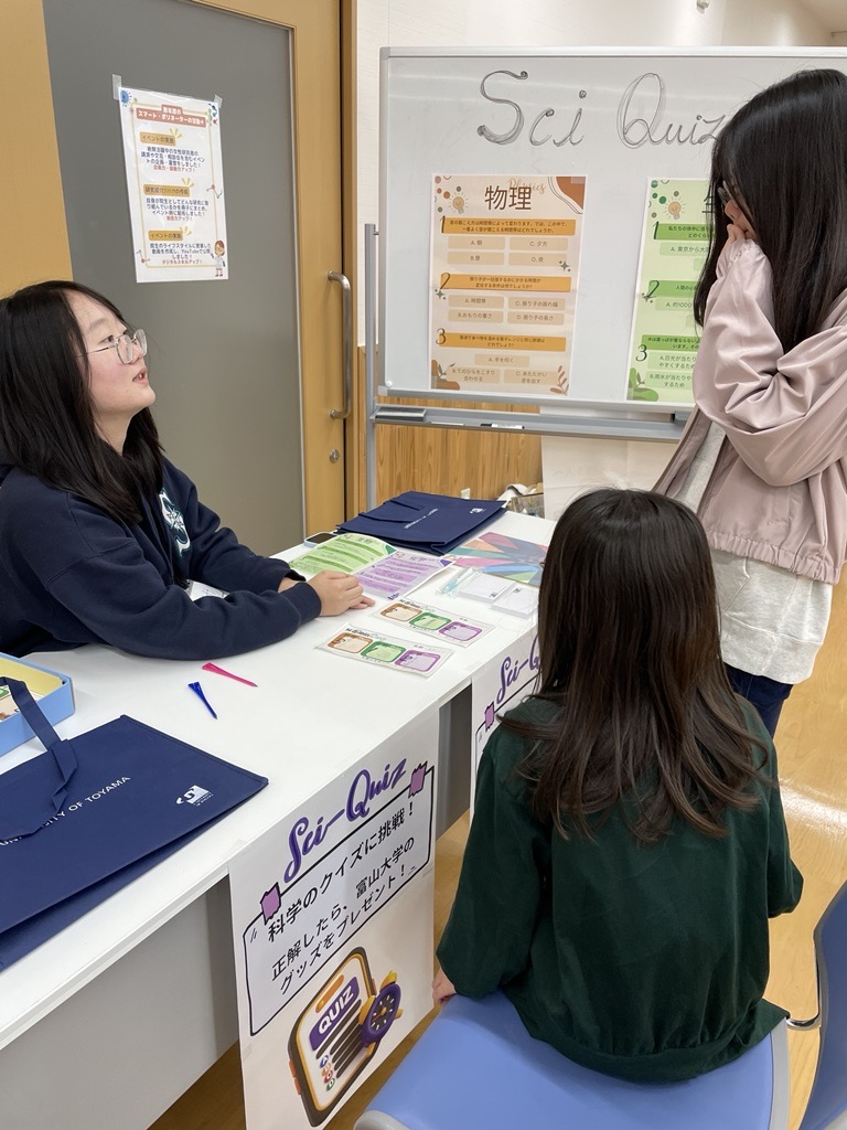 ホーム -> ニュース、イベント -> 総曲輪レガートスクエア文化祭2025に出展しました 総曲輪レガートスクエア文化祭2025に出展しました 11月1日(土)に開催された総曲輪レガートスクエア文化祭に、本学女子学生による理工系魅力発信プロジェクトチーム、「スマート・ポリネーター」がブースを出展しました。 Sci-Quizと題し、化学・物理・生物の問題を掲示し、来場者の皆さんに科学クイズを楽しんでいただきながら、ポリネーターの活動紹介を行いました。文化祭を企画運営していただいた皆様、ご参加いただいた皆様、ありがとうございました。 戻る