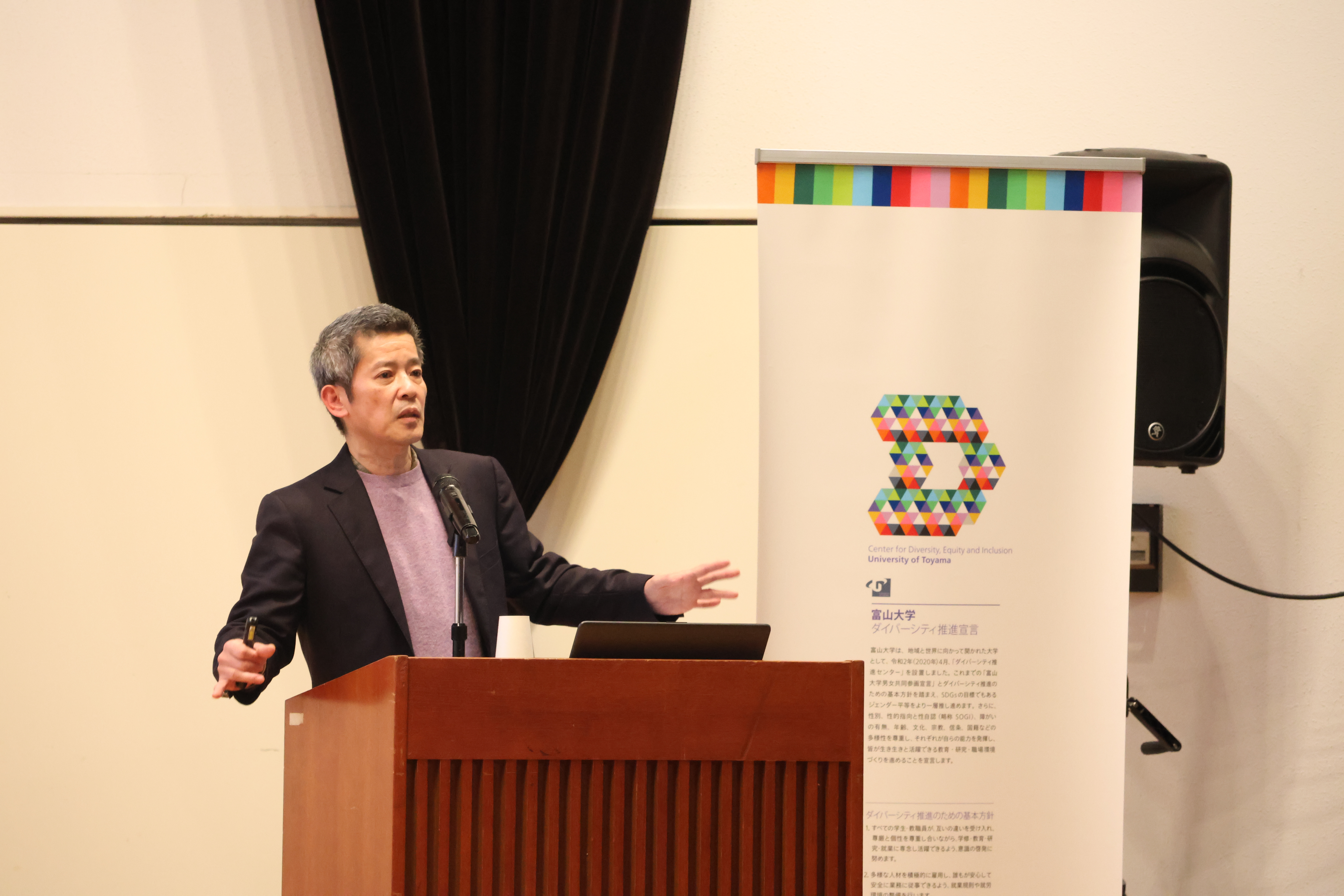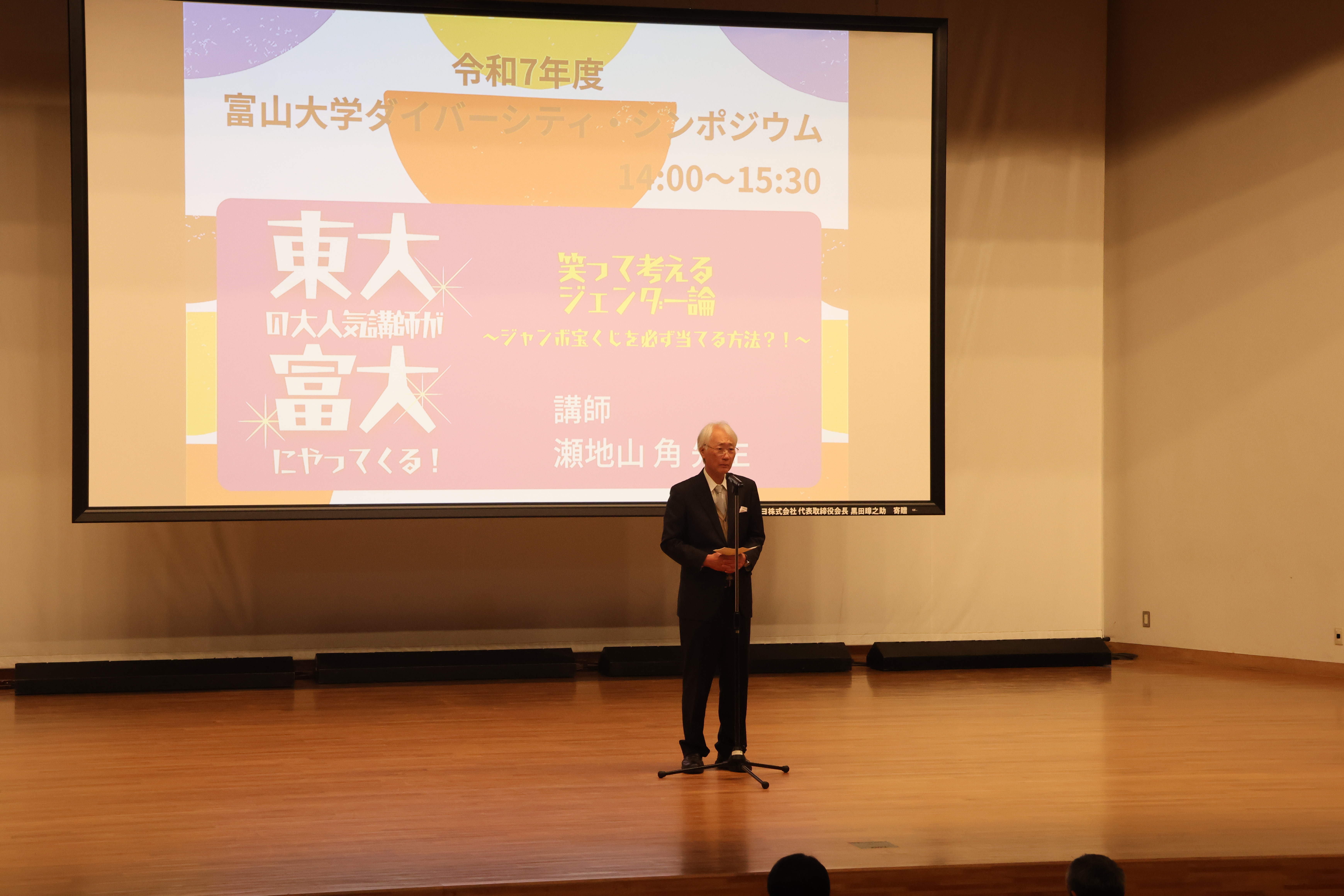 12月24日、五福キャンパスにおいて、令和7年度富山大学ダイバーシティ・シンポジウムを開催しました。多様性を尊重し、それぞれが能力を発揮して活躍できる環境づくりを目的としてダイバーシティ推進センターが主催し、学生や教職員、一般を含む166名が参加しました。