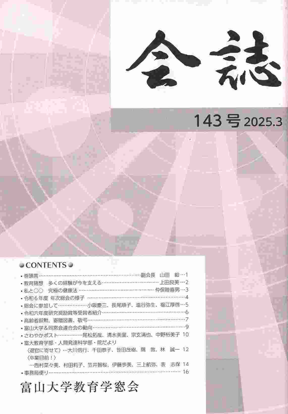 143号・2025年3月発行 ☆目次 会誌の題字は若林武夫(昭和13年卒)です。 |