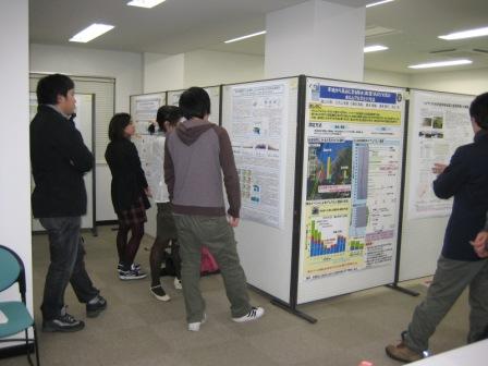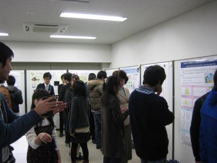 第2部では、大学院生を中心としたポスター発表を開催。会場をうめるように発表ポスターが掲示され、あちらこちらで熱いセッションが繰り広げられました。また、学生たちからも、互いの研究成果を改めて知ることができたと好評で、さらなるステップアップ目指して刺激しあう会となりました。