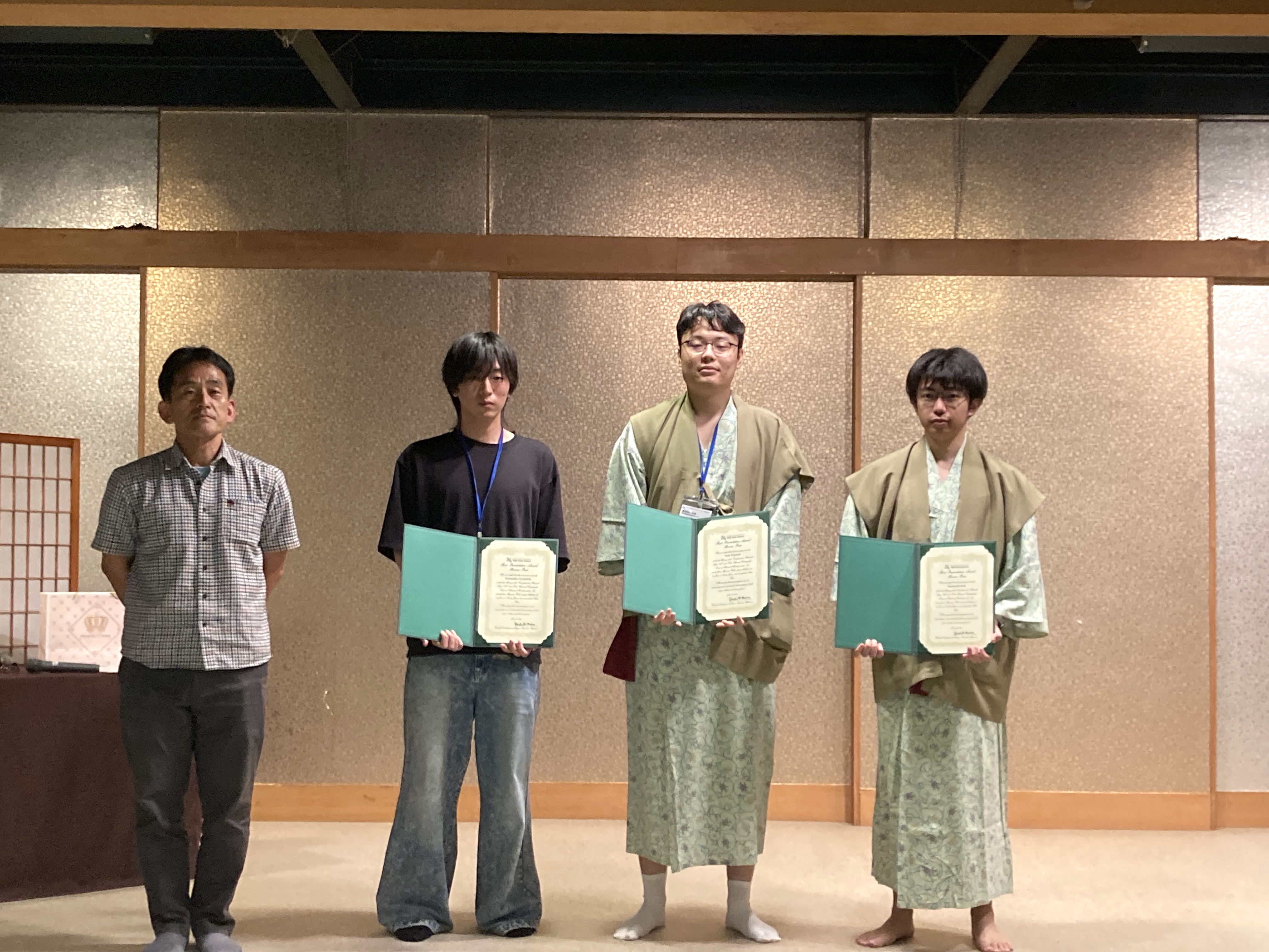 At the 1000 Tesla Science Workshop held in Sendai, Gomado-san's poster presentation was selected for the Bronze Prize. The meal at this ryokan was excellent, and good news came one after another.