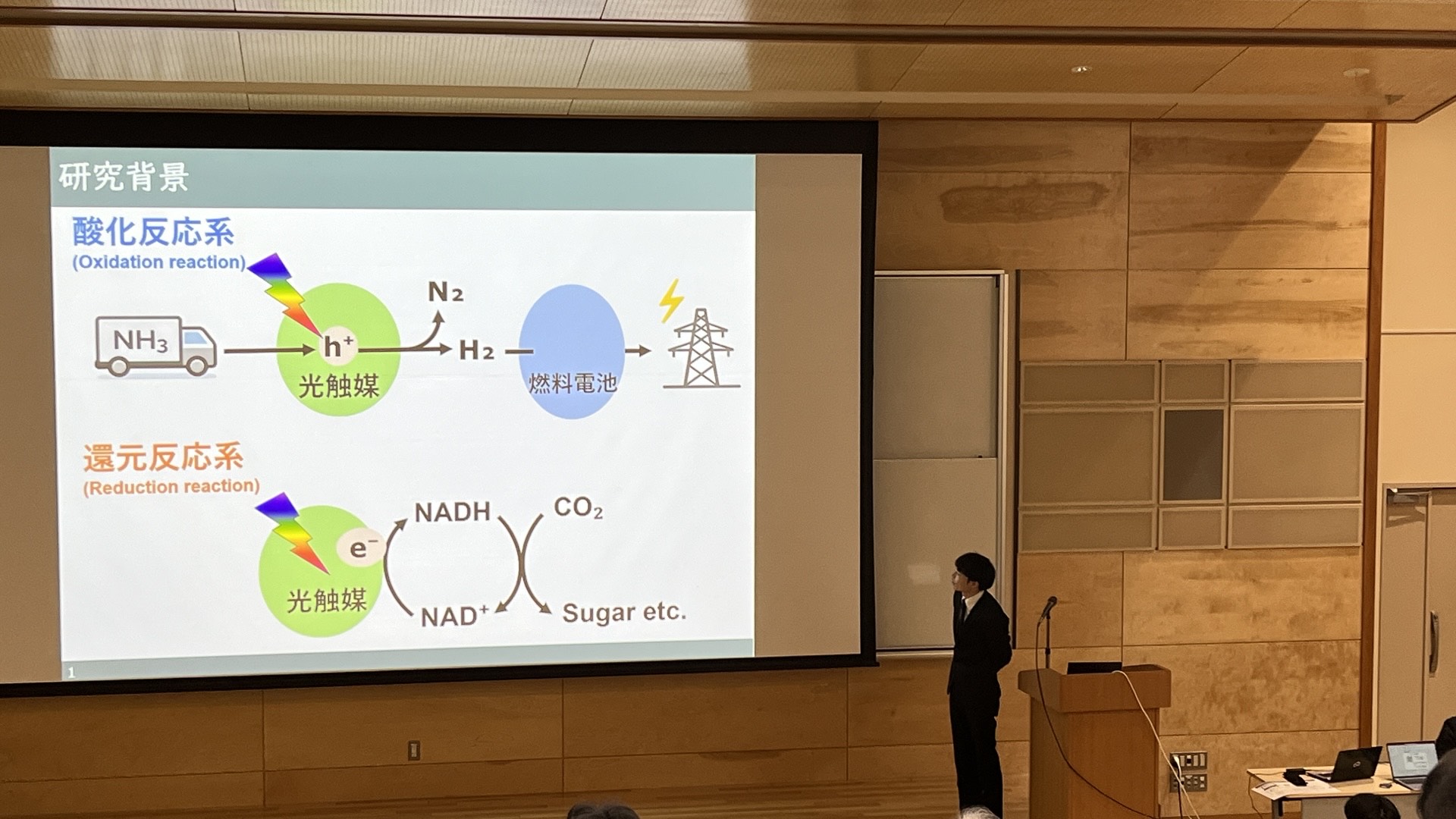 In his final stage of research, Kanaji-san worked hard and opened a path toward NADH regeneration using a CNT photocatalyst.