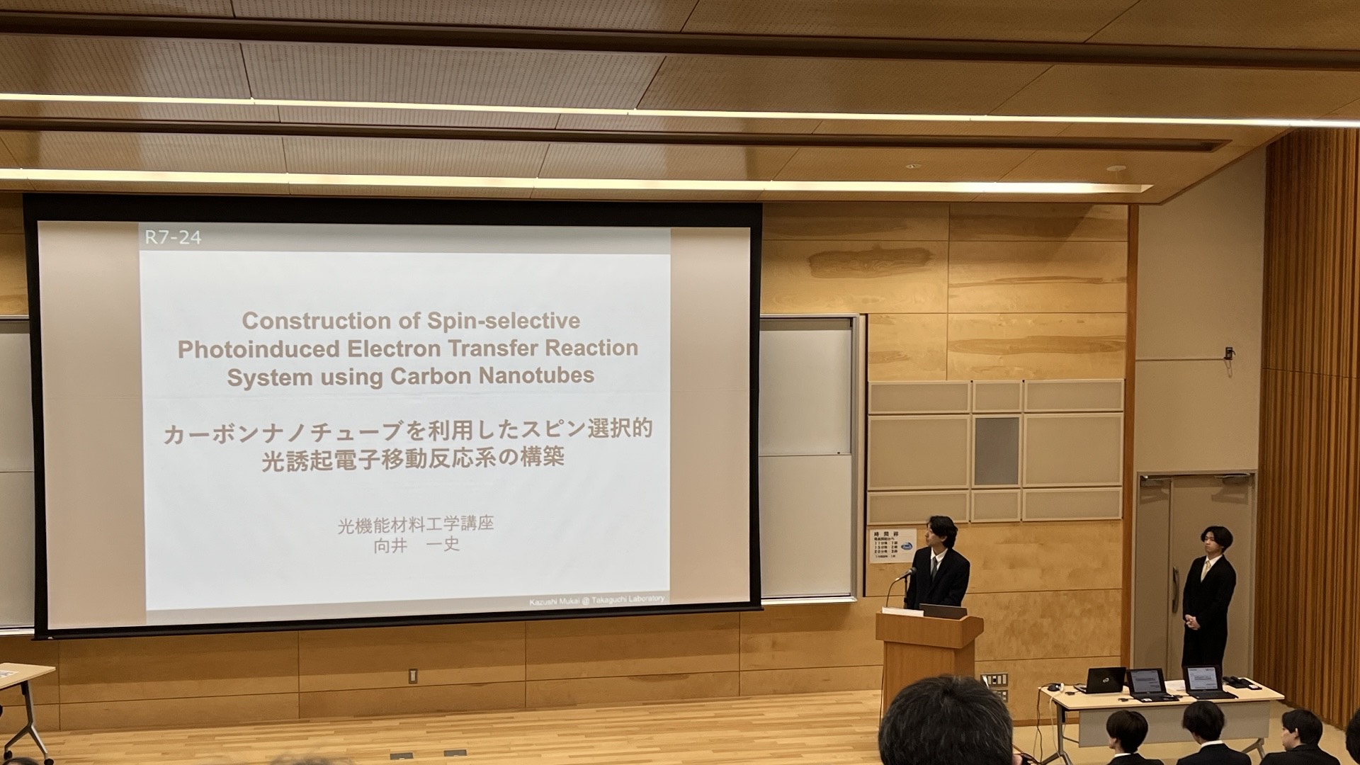 Mukai-san carried out experiments until the very end before his master's thesis presentation, so the talk was not perfect, but he opened a new path toward understanding magnetic-field effects in CNT photocatalytic reactions.