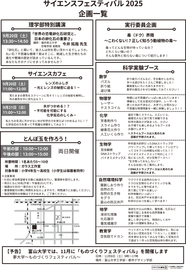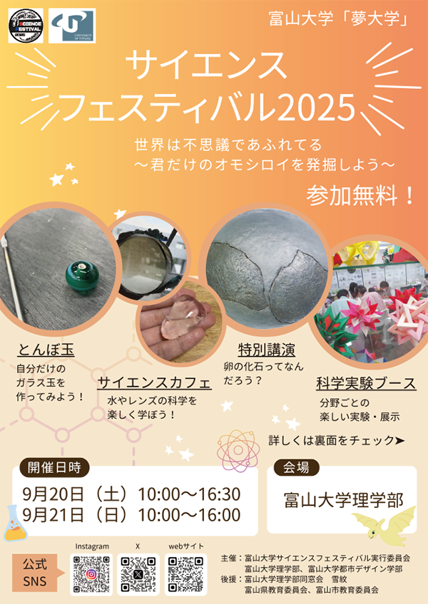 富山大学「夢大学~サイエンスフェスティバル2025~」開催のお知らせ