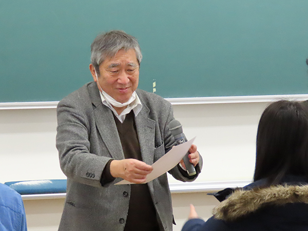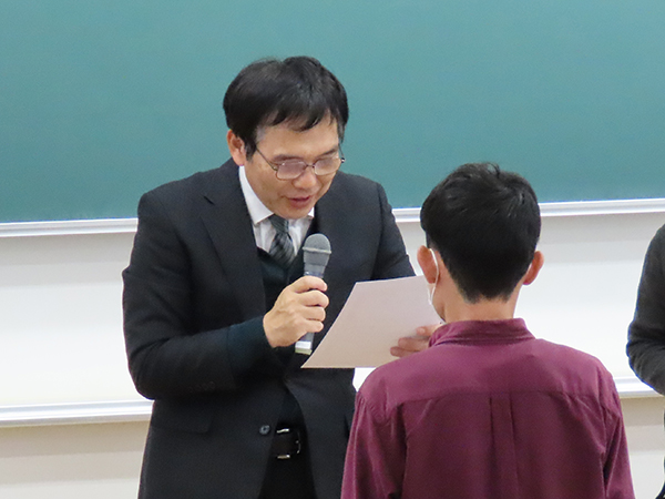表彰式では、理学部長/学科長から出席者ひとりひとりに表彰状と副賞が手渡されました。