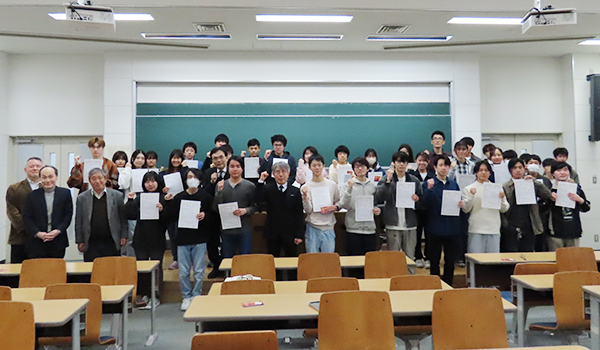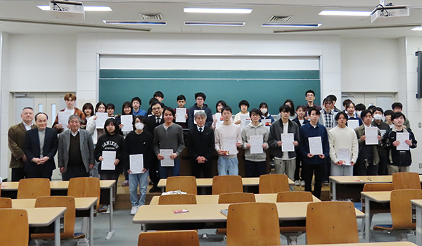 令和8年3月31日(火)、理学部多目的ホールにおいて、令和7年度後期に行われたTOEIC IPテストで優秀な成績を修めた理学部の学生を対象に表彰式を行いました。