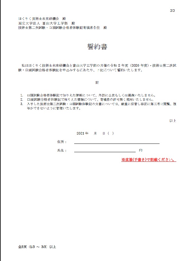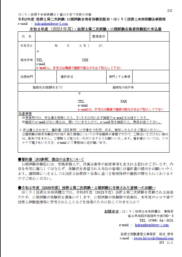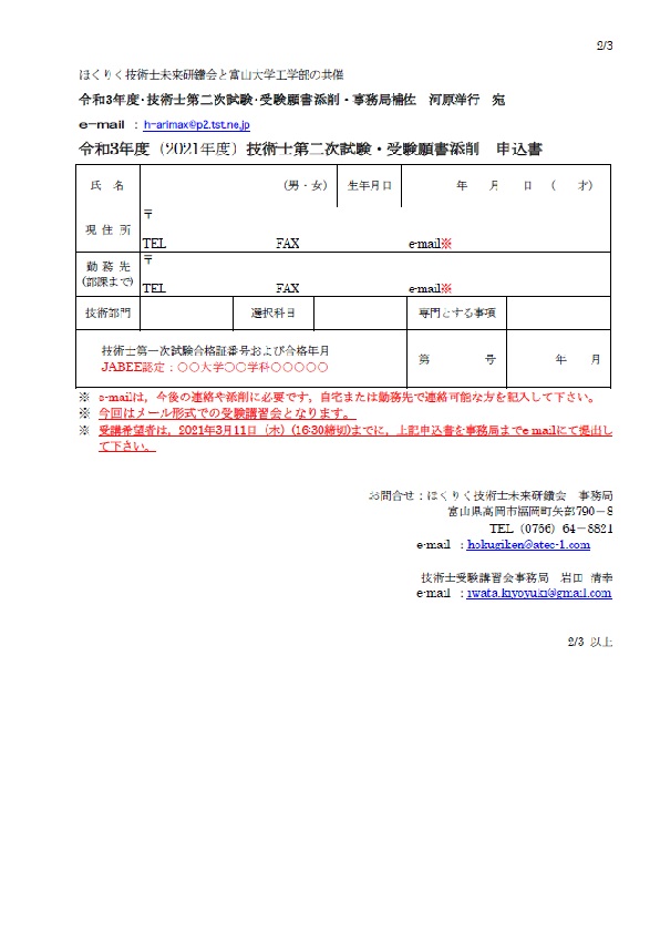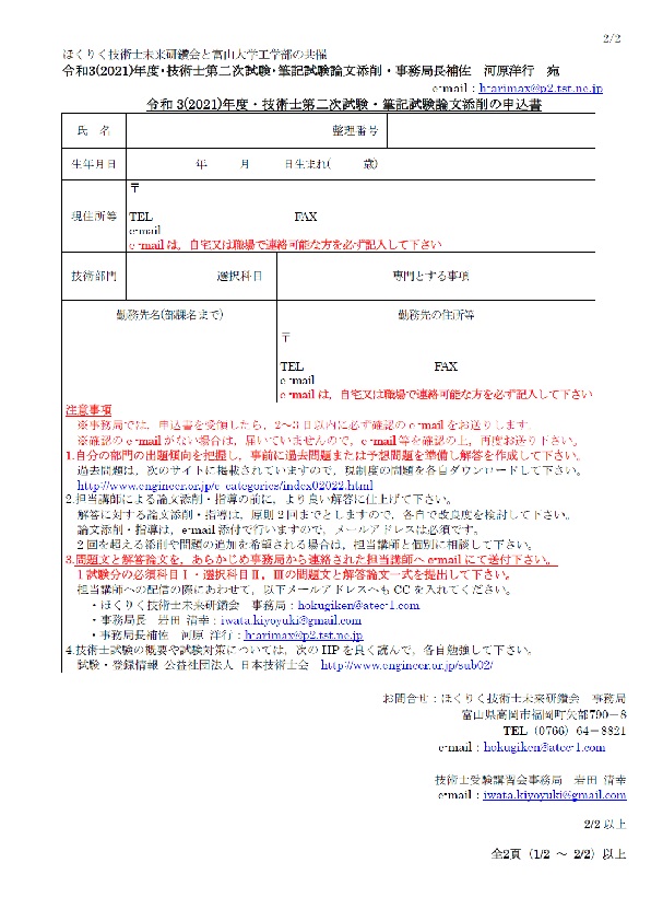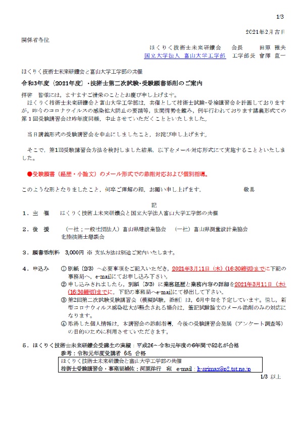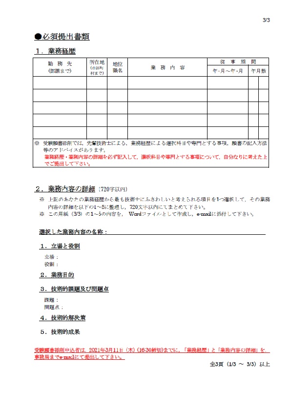 令和3年度(2021年度)・技術士第二次試験・受験願書添削のご案内(PDFファイル)