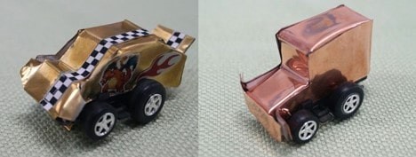 いくつかの種類の金属板を曲げたり切ったりして、ゼンマイ動力で走るオリジナル自動車ボディを作ります。最後に競技で盛り上がります!
